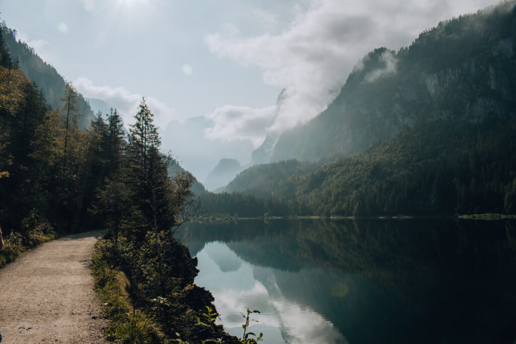 The shortest walk is around the Vorderer Gosausee. The walk is about 4.5 kilometers long and there is no difference in height. Most of the path is paved, which makes it ideal for families with small children, prams or wheelchairs. The walk takes around an hour to an hour and a half.